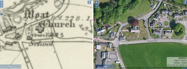 The website of the National Library of Scotland has a fascinating map viewer. Clicking on an images shown below will open a page showing an early Ordnance Survey map showing the burial ground alongside a modern satellite view of the same area. Once open, the maps can be scrolled and zoomed and different map combinations can be selected.
